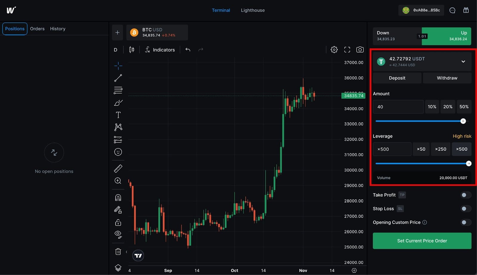 Leverage is when you borrow crypto from an exchange (or another crypto entity, like a broker) to increase your buying power. How much you’re able to borrow usually depends on the collateral in your digital wallet. Walbi allows you to leverage up to 500x your account balance!