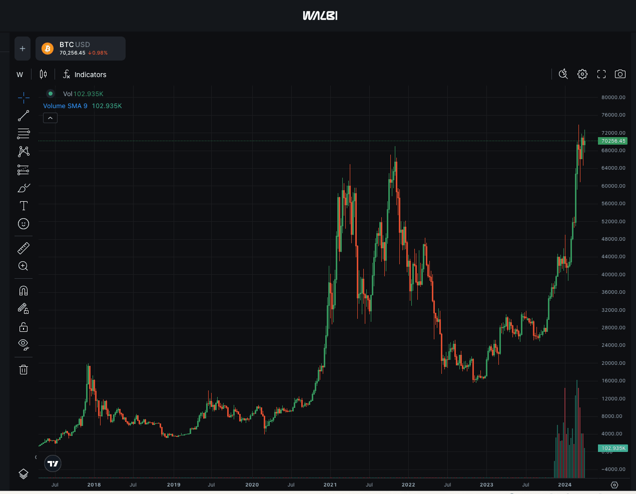 Analisar o histórico de preços de uma moeda pode dizer muito sobre seus altos e baixos, tendências gerais e para onde ela pode estar indo. Isso pode ajudar você a estimar futuros aumentos de preços. Lembre-se de que o mercado de criptomoedas é conhecido por suas fortes oscilações, mas algumas moedas são especialmente agitadas. Essa volatilidade pode ser um sinal de um esquema de “bombear e despejar”, que é uma grande bandeira vermelha!