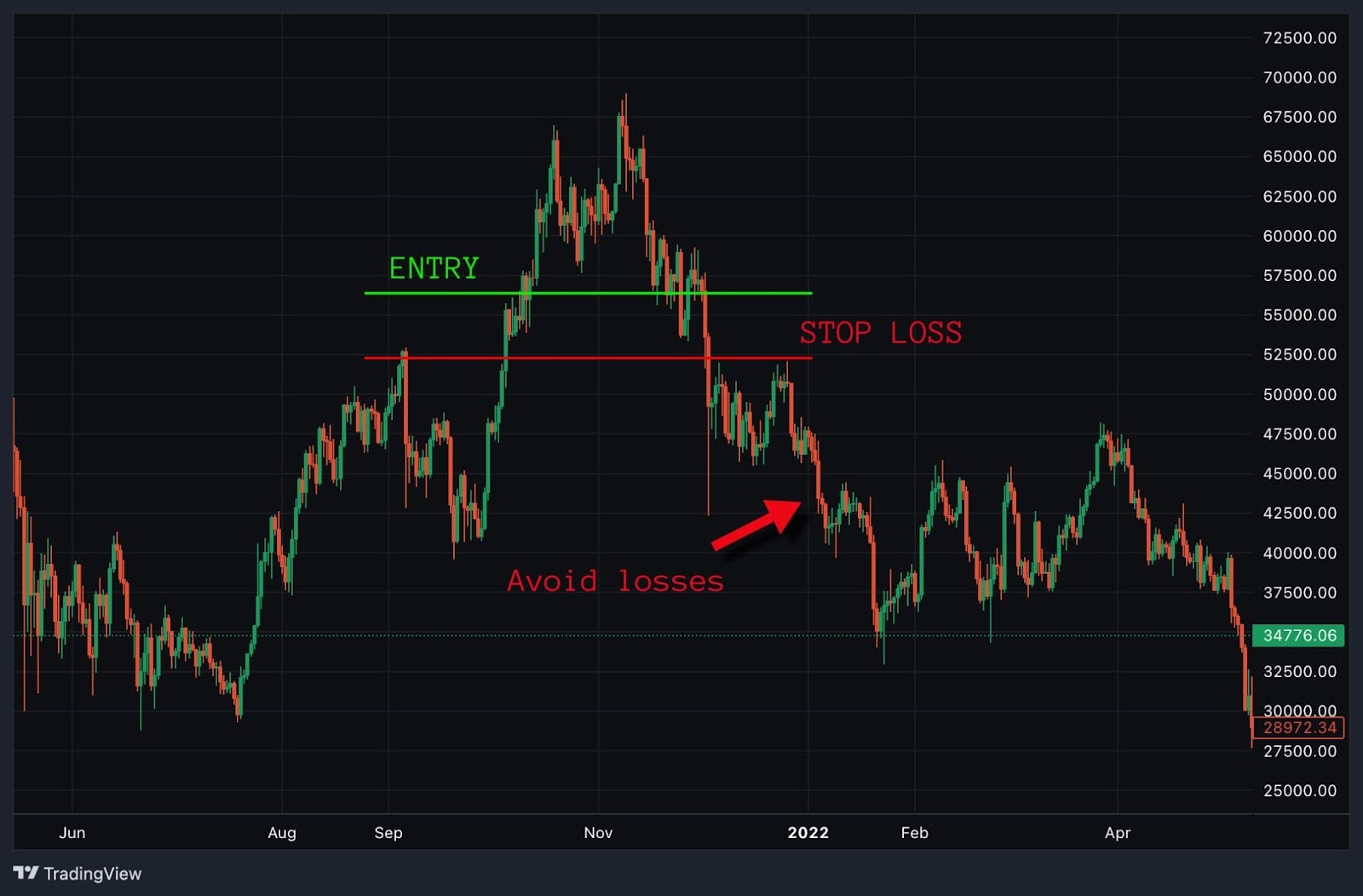 Это позволяет трейдерам не терять слишком много денег, если цена продолжит падать. Трейдерам следует учитывать краткосрочные колебания цен. Слишком высокая цена может привести к слишком быстрому срабатыванию ордера. Большинство трейдеров выставляют стоп-лосс чуть ниже уровня поддержки. Если цена упадет ниже этого уровня, скорее всего, она продолжит падать.
